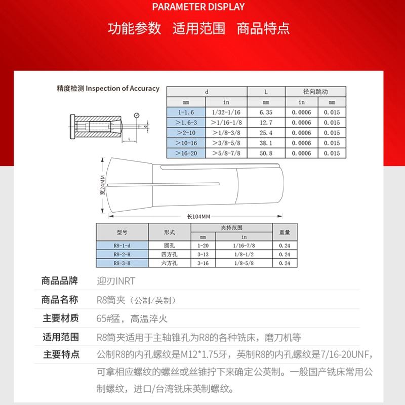 Welcome edge INRT milling machine Ying system R8 cylinder clip elastic plus hard-to-head turret milling spring hairpin thread 7 16-20