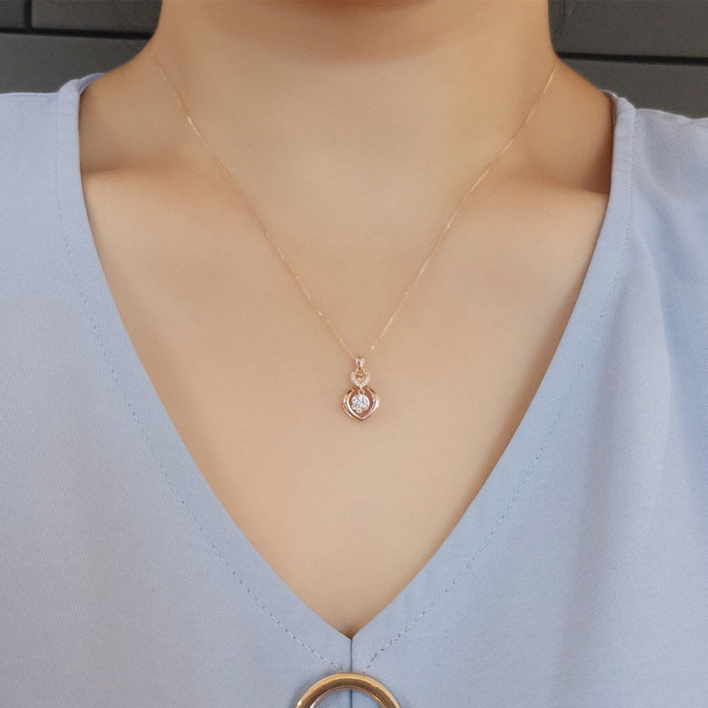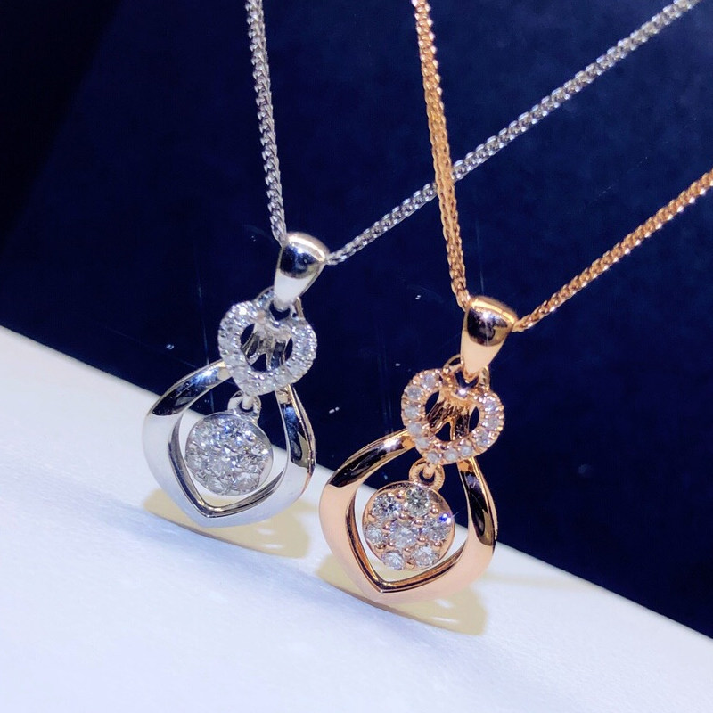 18K gold diamond pendant heart-shaped necklace heart-shaped necklace with water drop lock bone chain Women in six walled One platinum rose gold trekking