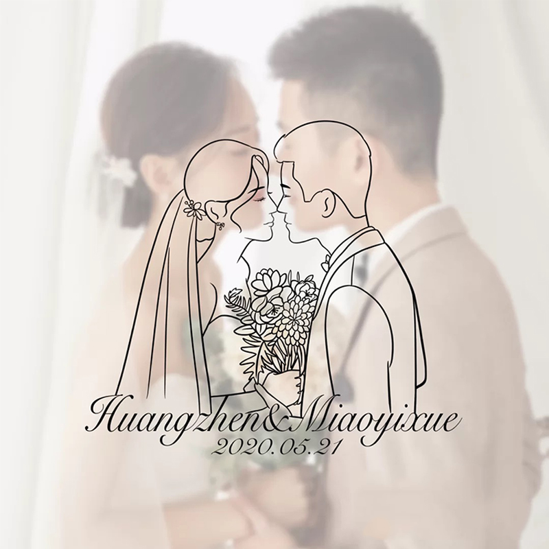 Wedding logo silhouetsWedding design please put custom line outline of hand-drawn head painted surname word