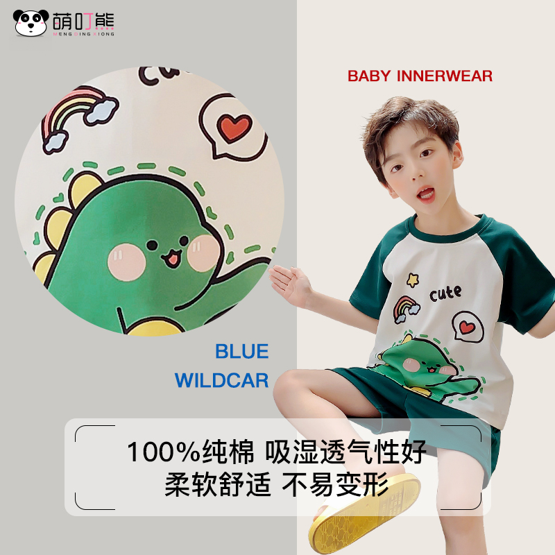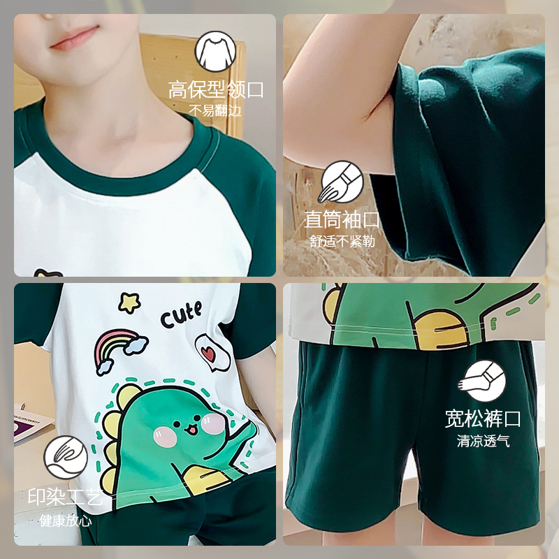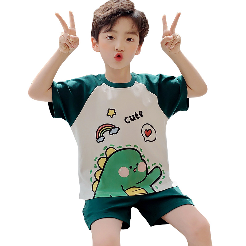 Boy sleepwear Summer thin style Cute Cartoon Pure Cotton Short Sleeve Shorts Children Boy Round collar Home Two sets
