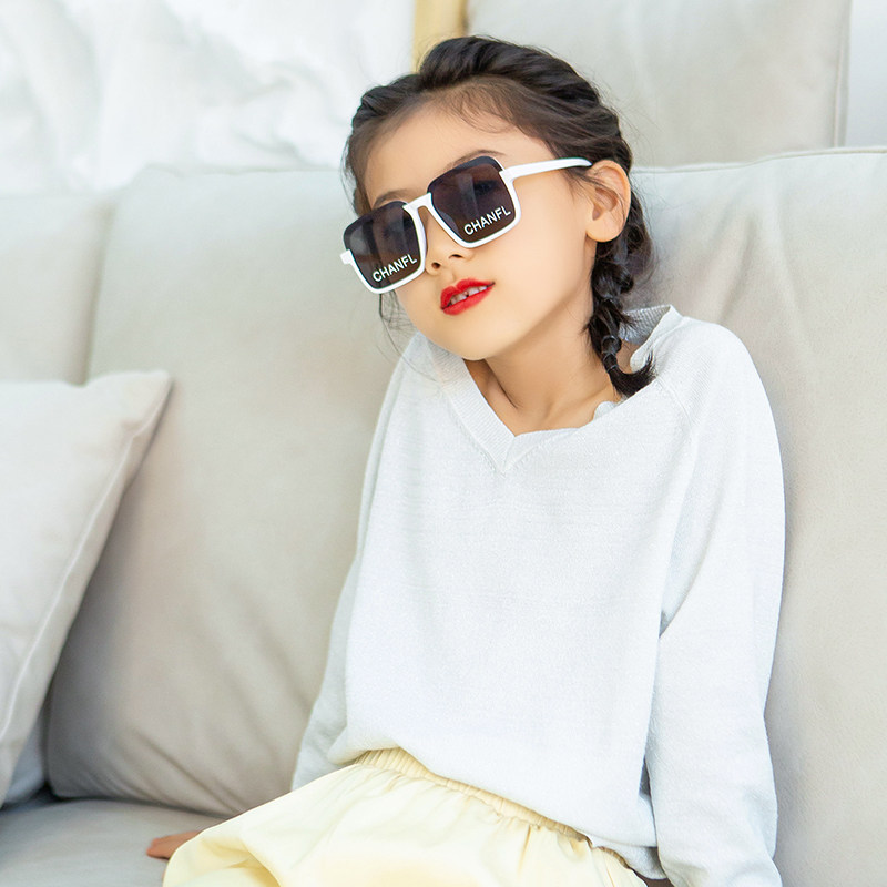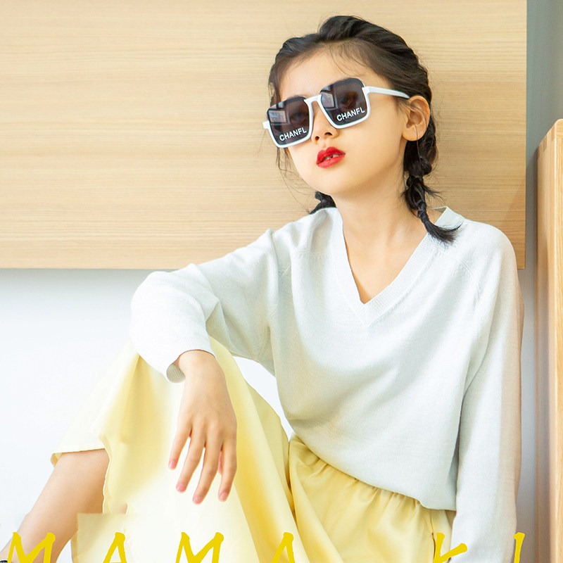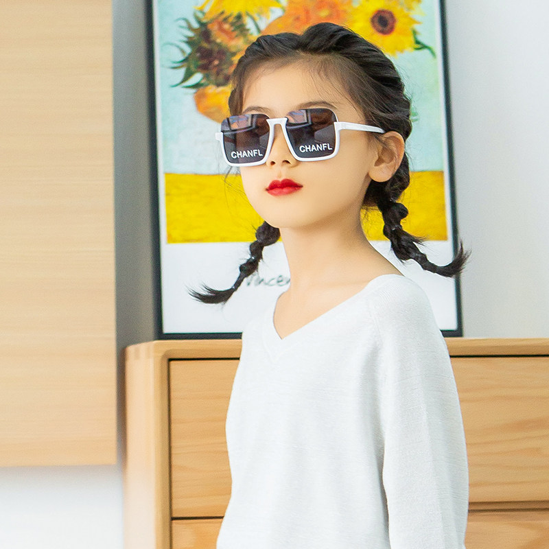 Korean version of children's square letters sunscreen sunglasses summer girls' sunglasses children's half-frame personalized glasses tide