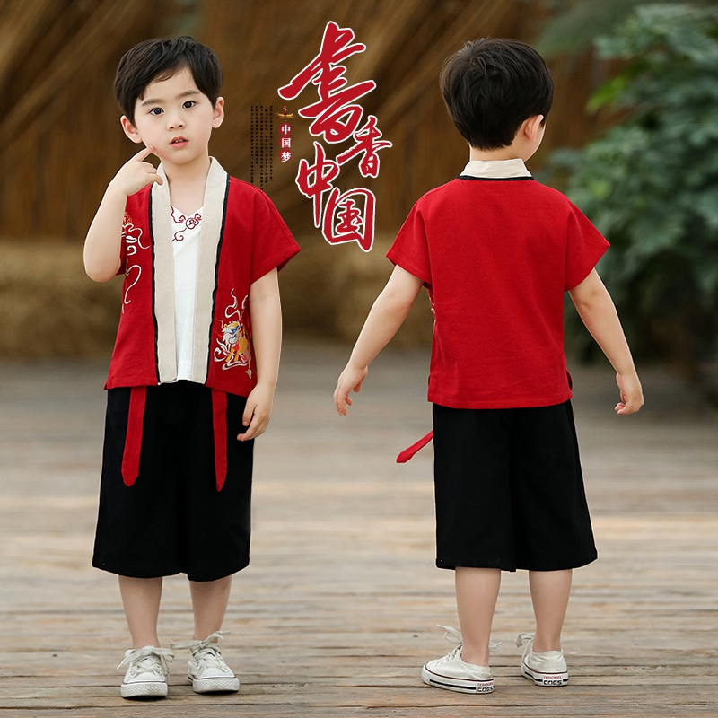 Hanfu boys' summer clothes children's Chinese style ancient costumes one-year-old clothes performance clothes baby summer Tang suits short-sleeved suits
