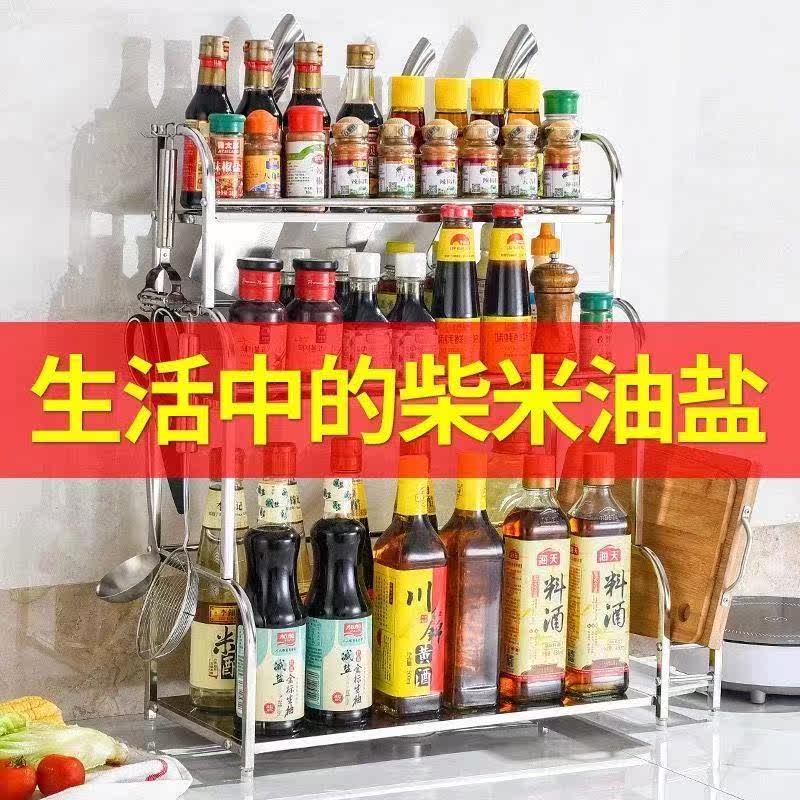 Kitchen rack stainless steel floor multi-layer seasoning seasoning can rack knife rack multi-functional storage layer rack rack supplies
