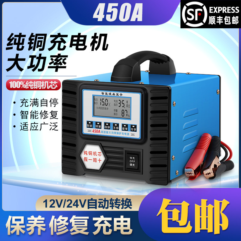 Battery charger 12V24V car and motorcycle battery is full of self-stop high-power pure copper core charger