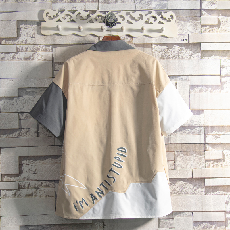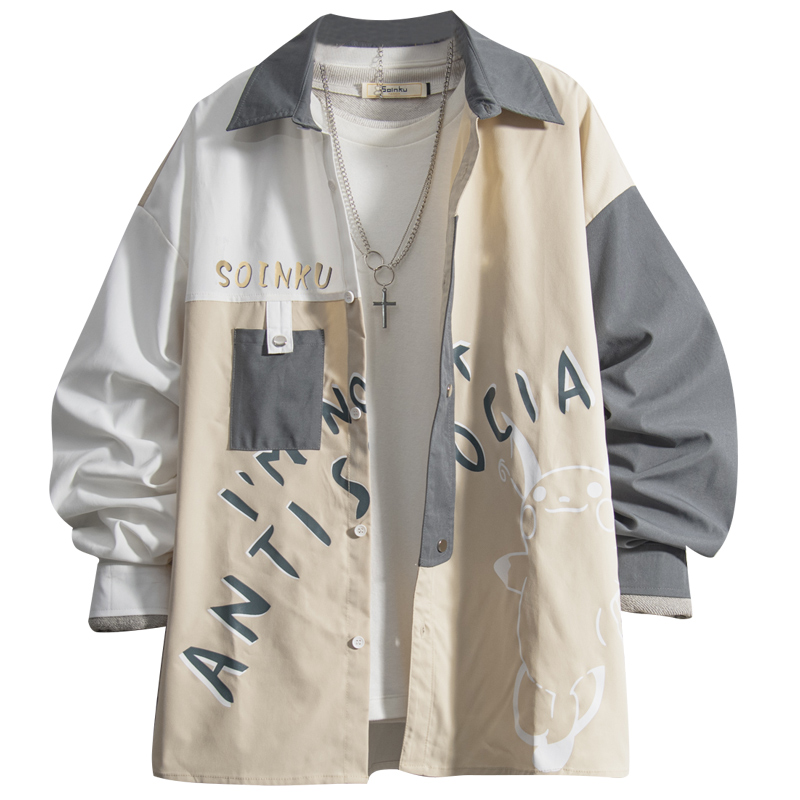 @ Flammable Youth Tide Cards Summer Fall Splicing Design Sensation Small Crowdcartoon Long Sleeve Shirt Men's Flannel Shirt Suit