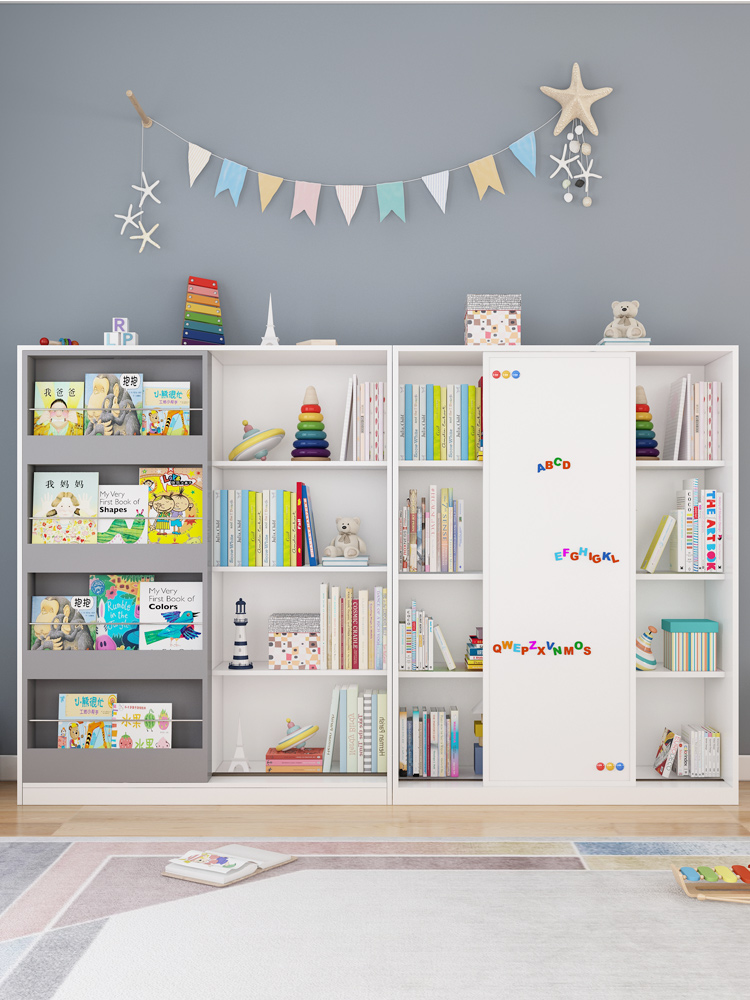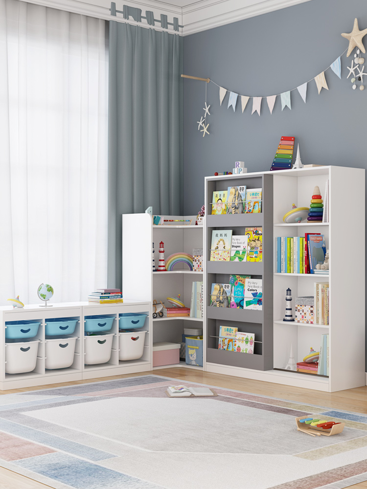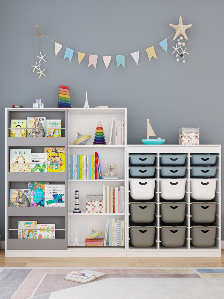 4-layer multi-functional sliding door picture book rack blue-green length 112CM 4-layer picture book rack gray length 120CM 3*5 Shufat big half box cabinet 4-tier picture book rack pink length