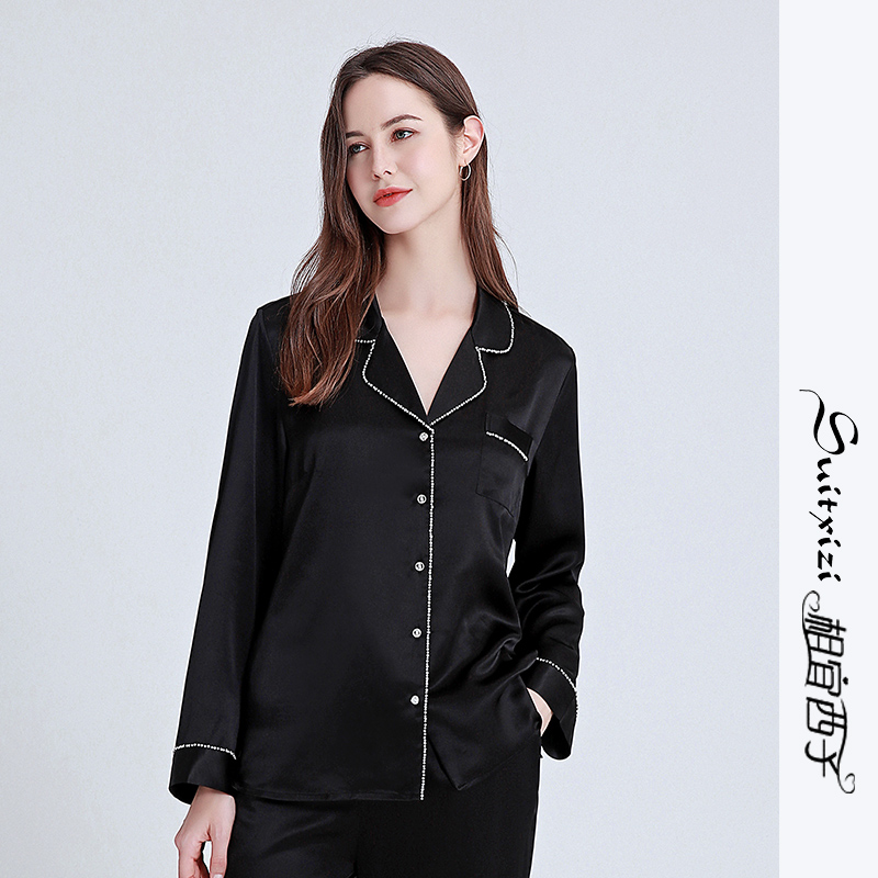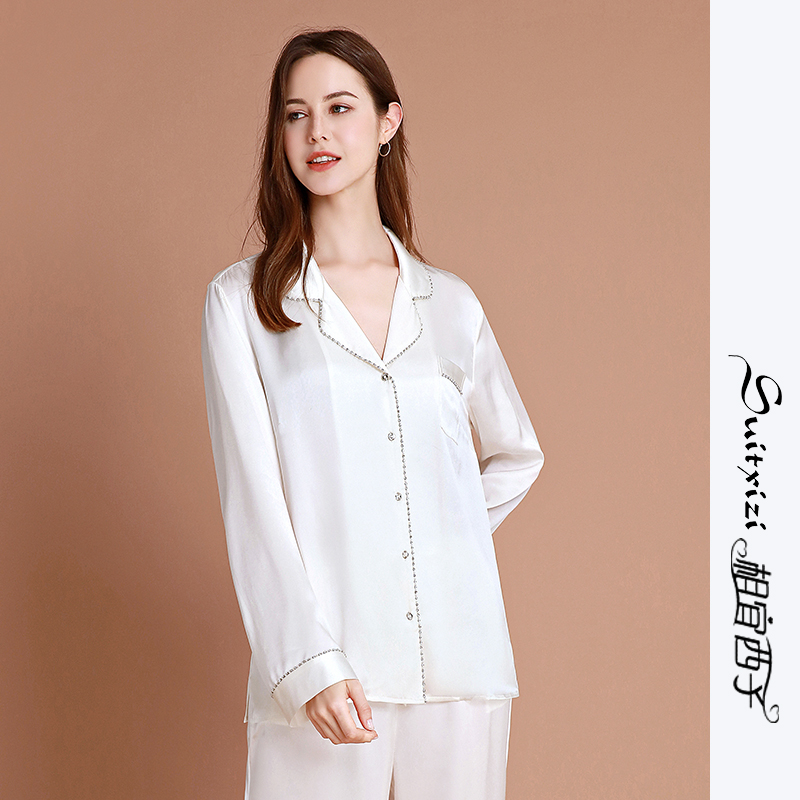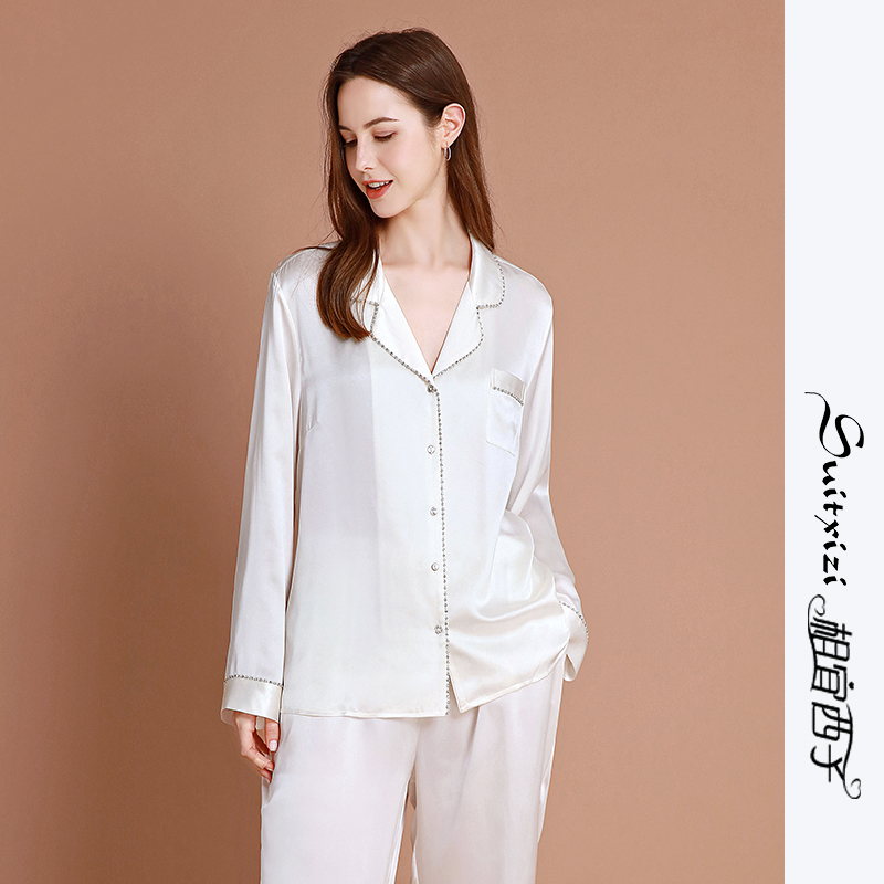 Suitable Xizi heavy 22mm mulberry silk pajama set with Swarovski rhinestone Silk homewear