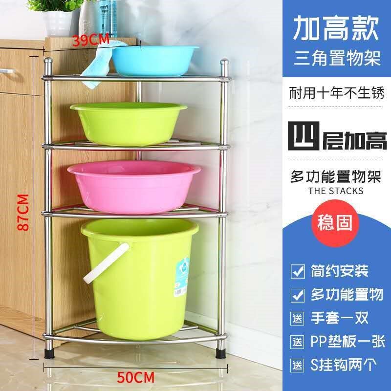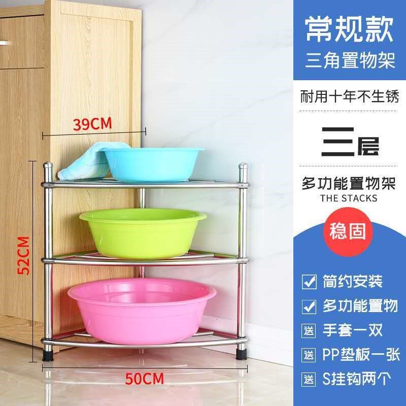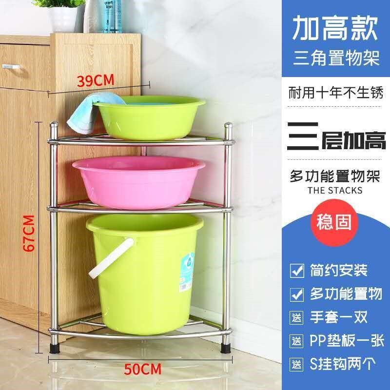 Stainless steel washbasin shelf bathroom shelf floor-standing triangular bathroom toilet plastic basin storage