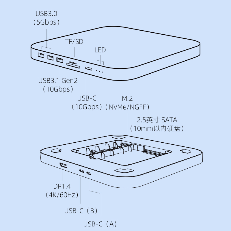 1st generation (deep space gray USB3 0*2 USB2 0*2 TF SD card reader SATA2 5 inch hard disk port) 1st generation (streamer silver USB3 0*2