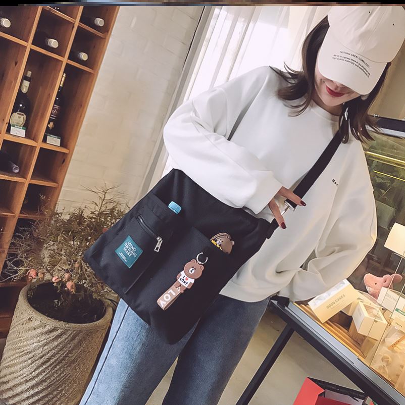 Canvas Bag Cross Section Female Han Version Original Juku Department Brief Art Wind Portable with portable 100 hitch student package Inclined Satchel Bag