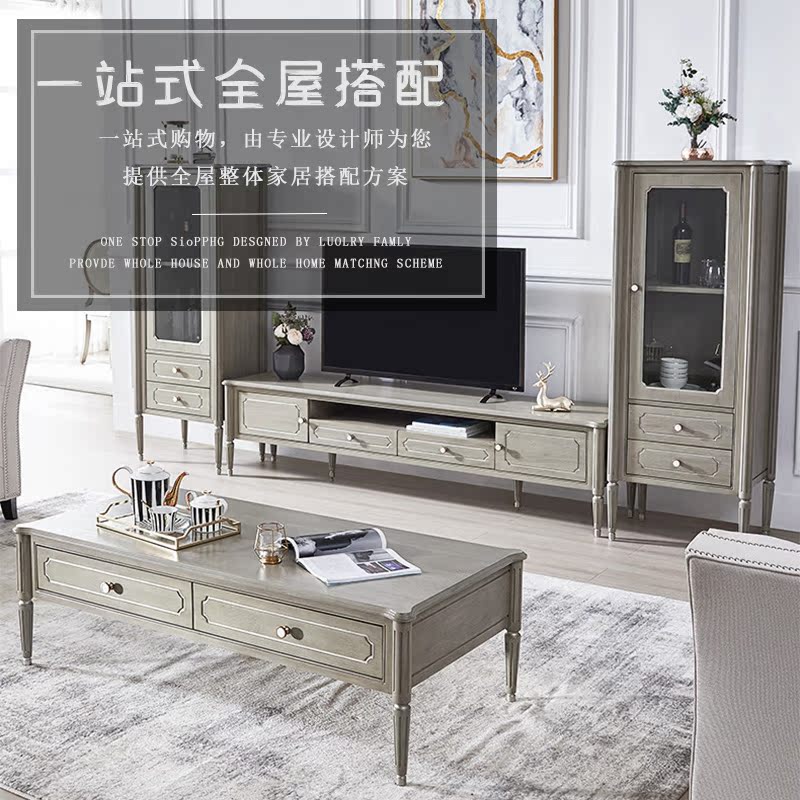 American country solid wood TV cabinet small apartment home table light luxury style floor cabinet modern minimalist sofa coffee table combination