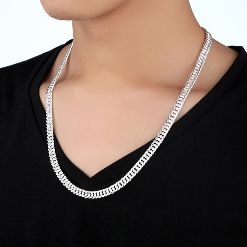 Sterling silver necklace 99 fine silver horsewhip chain trendy men's Chopin chain thick clavicle chain domineering pendant for boyfriend