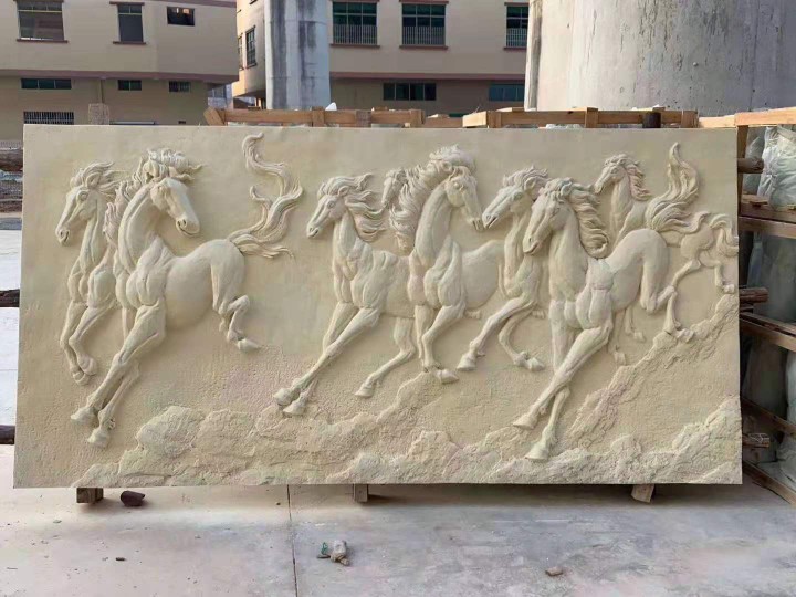 Sandstone Reliefs Mural Background Wall Eight Jun Tu Sandstone Embossed Exterior Wall Decoration Villa Mountain Flower Customize