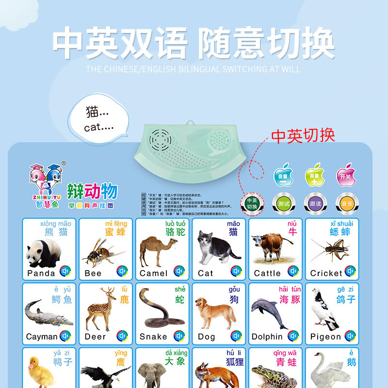 Children's wall chart with sound, children's cognitive enlightenment, early education, vocalization, baby's picture, literacy, pinyin, wall sticker toy