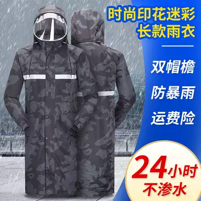 Camouflage raincoat rain pants set riot poncho two-piece riding men's and women's double-layer large size waterproof outdoor single long version