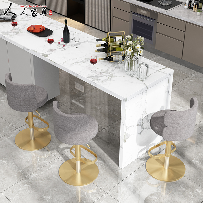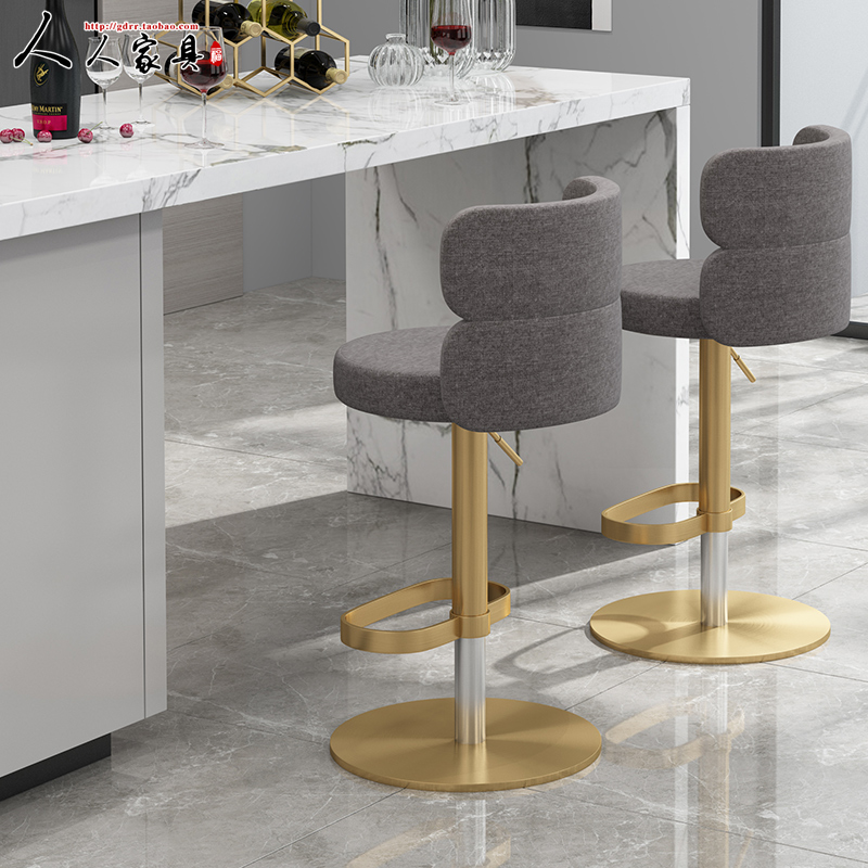 Nordic Modern Bar Chair Lift Swivel Light Lavish Stainless Steel Bar Stool High Footstool Leaning Back Chair Minima High Chair