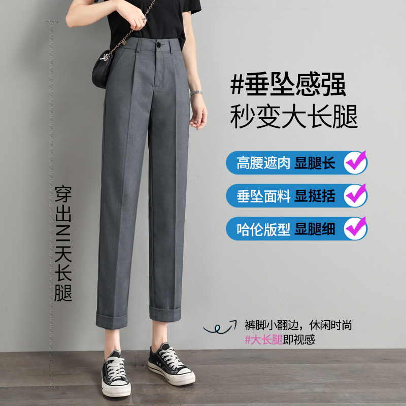 Grey Western Dress Pants Woman Summer Thin high waist straight drum 90% Harlan spring autumn small children Roof Casual Smoke Pipe Pants