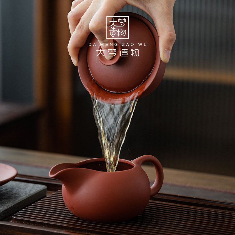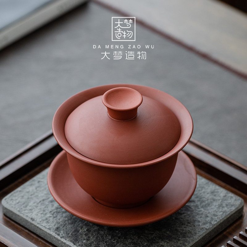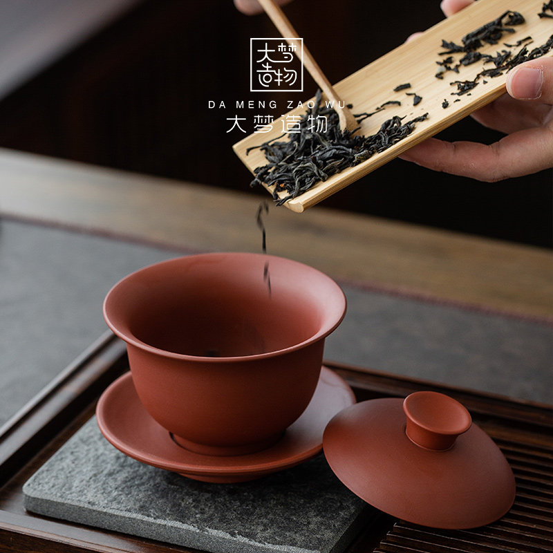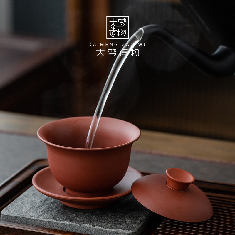 Great dream building Zhu Clay Purple Sand Ceramics Three Talents Cover Bowl Home Tea Pot Kongfu Tea Tea Cup Hand Grip Tea Tea Bowl