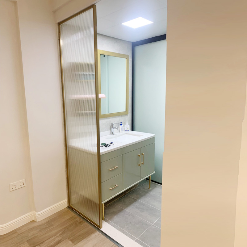 Black Narrow Side Bathroom Steelted Long Iridescent Glass Partition Makeup Room Wash Terrace Golden Screen Dry Wet Separation Genguan