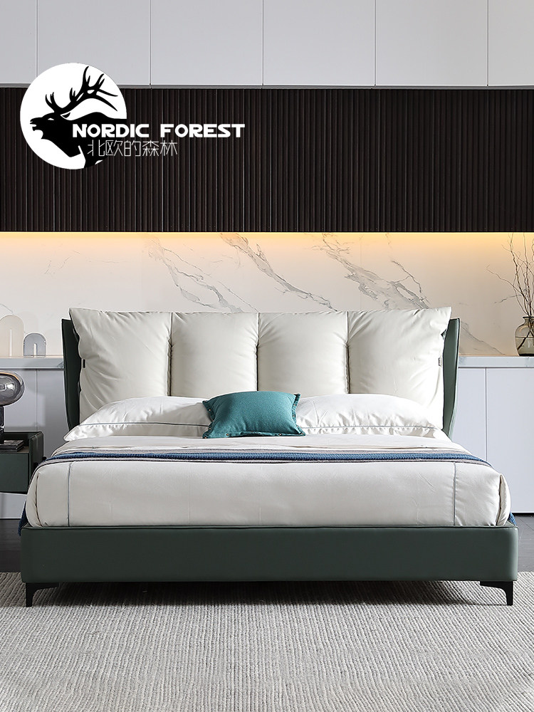 Italian-style modern minimalist leather bed small apartment light luxury 1 8 meters soft bag storage double bed master bedroom Nordic leather bed