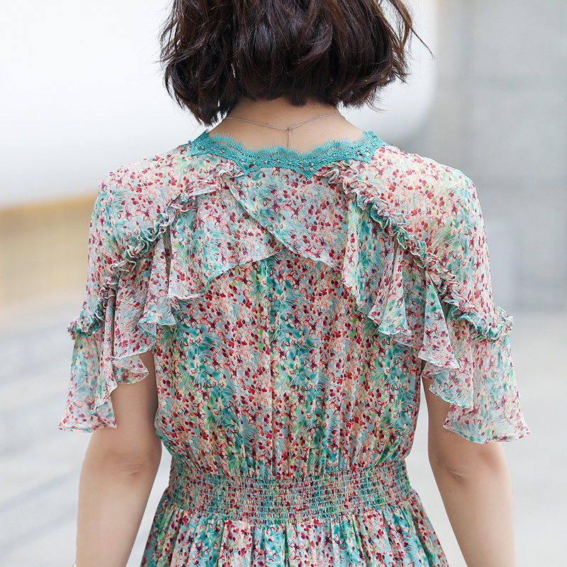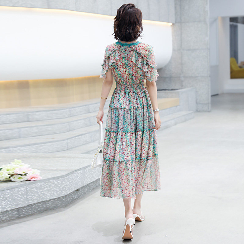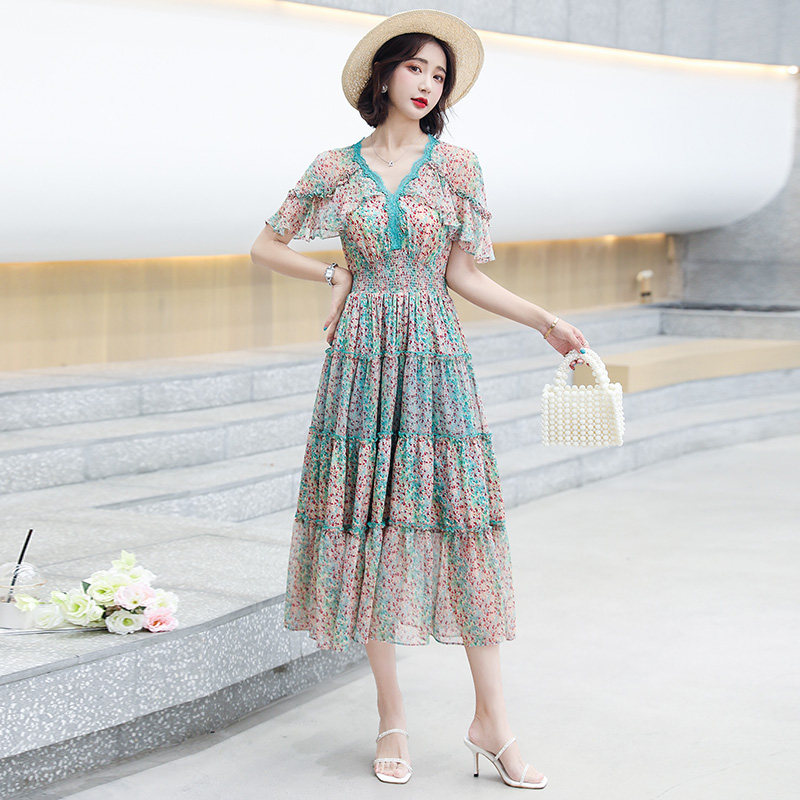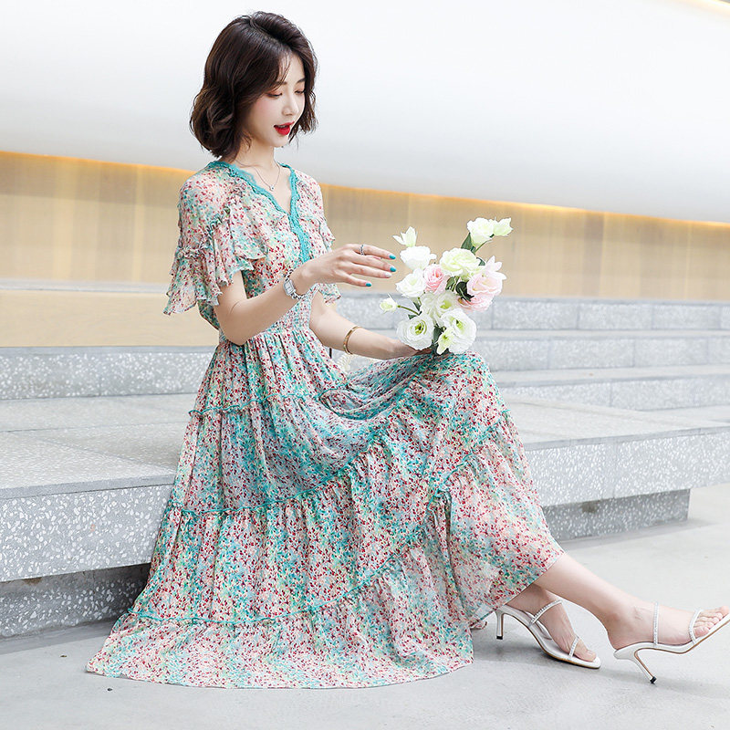 Snowspun Broken Flowers Ocean Dress Woman Xia 2022 new French style name Yuanyuan High-end Temperament Skirt to Cover Belly a word dress
