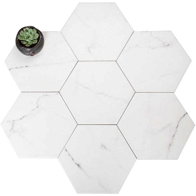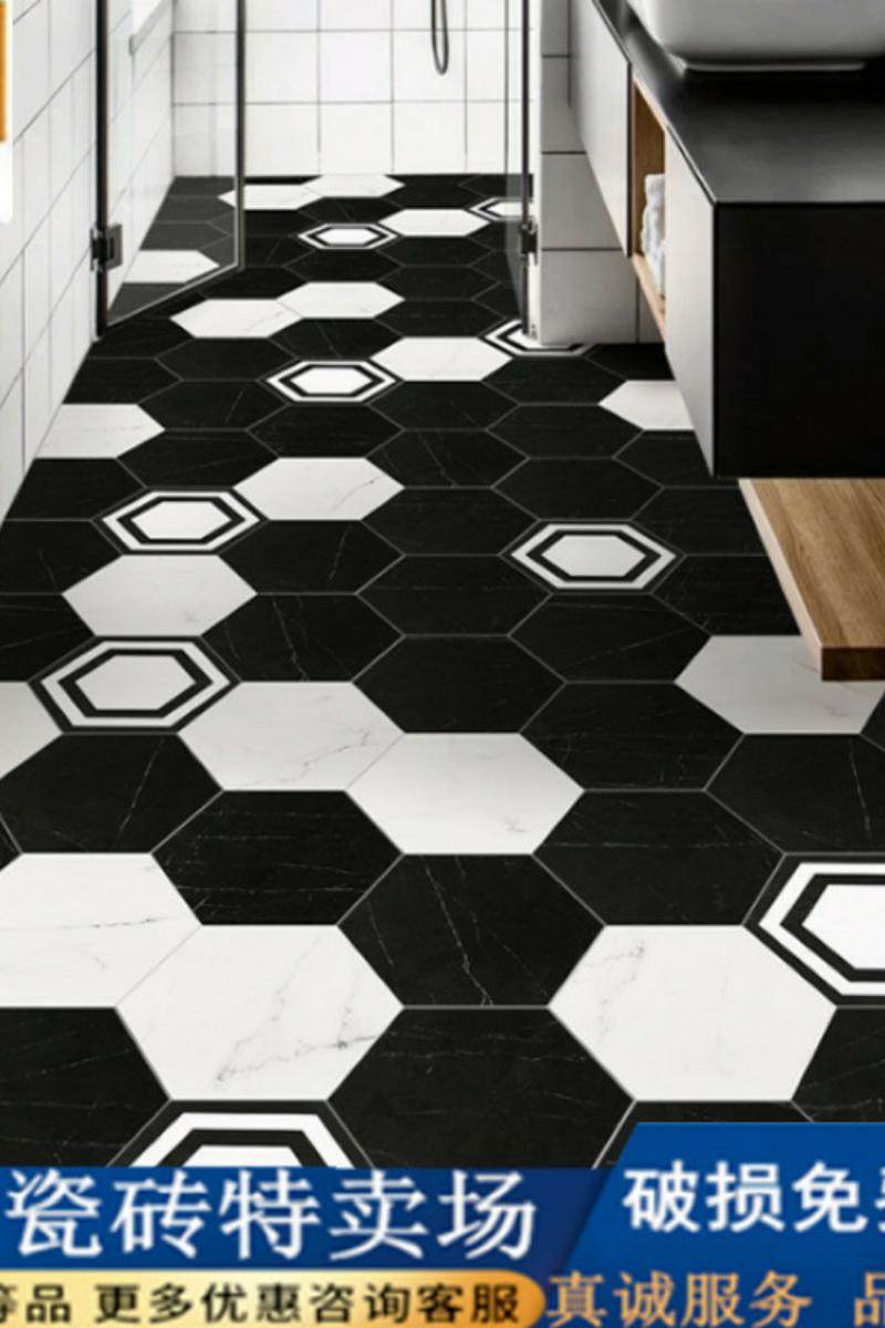 Nordic hexagonal brick bathroom imitation marble black and white porcelain wall brick kitchen balcony hexagonal non-slip antique floor tiles