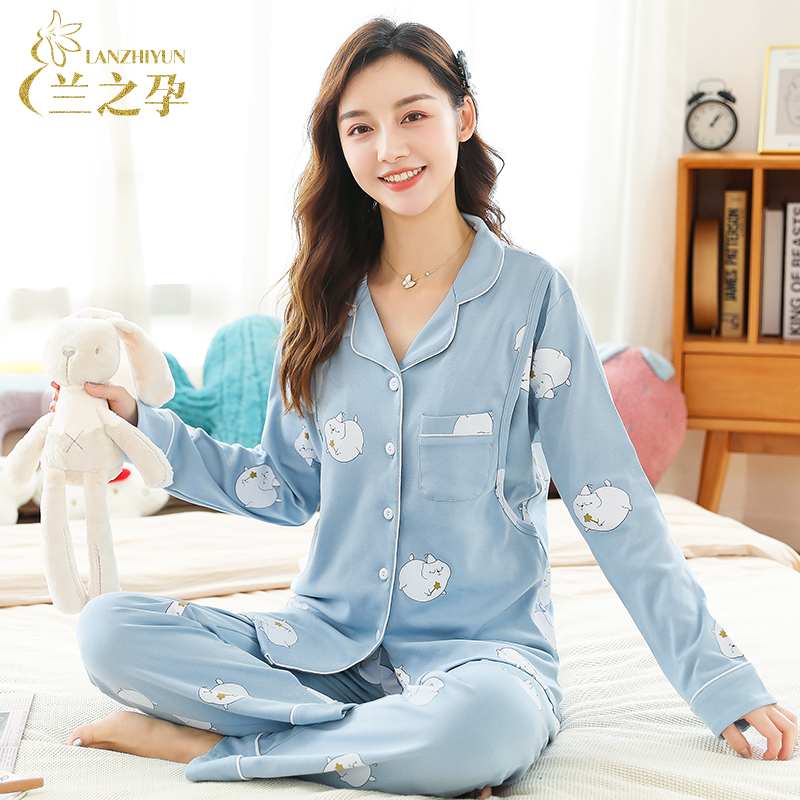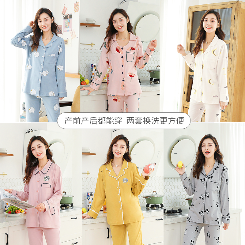 Lunar Subsuit Pure Cotton Postnatal Pregnant Woman Sleepwear Spring Autumn Thin May 4 Pregnancy 7 Maternal 6 Breastfeeding Breastfeeding Home
