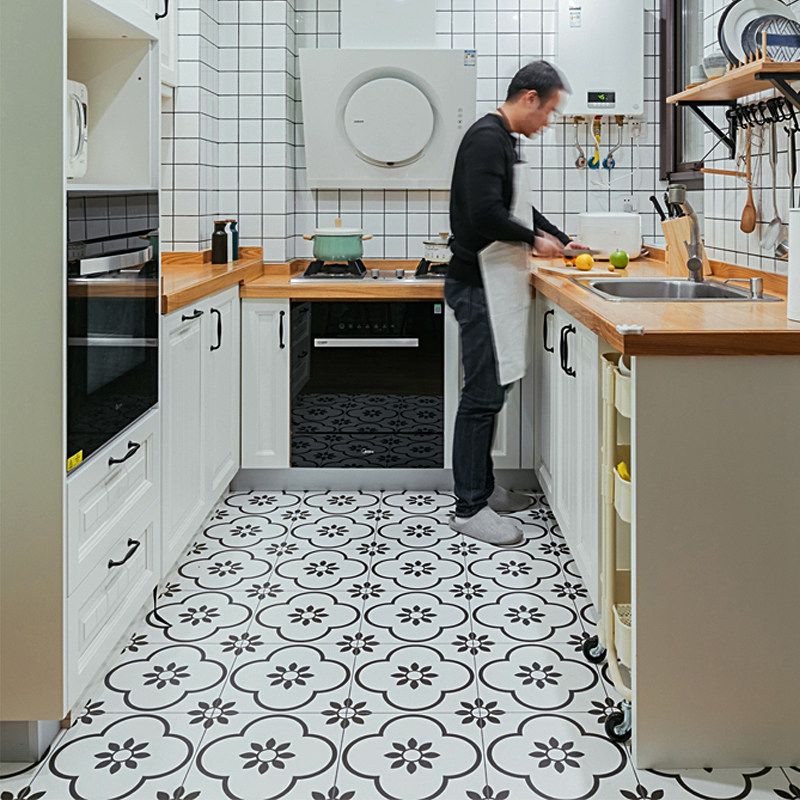 Kitchen tile wall tile Nordic style black and white homestay tile 300x300 toilet balcony retro non-slip floor tile