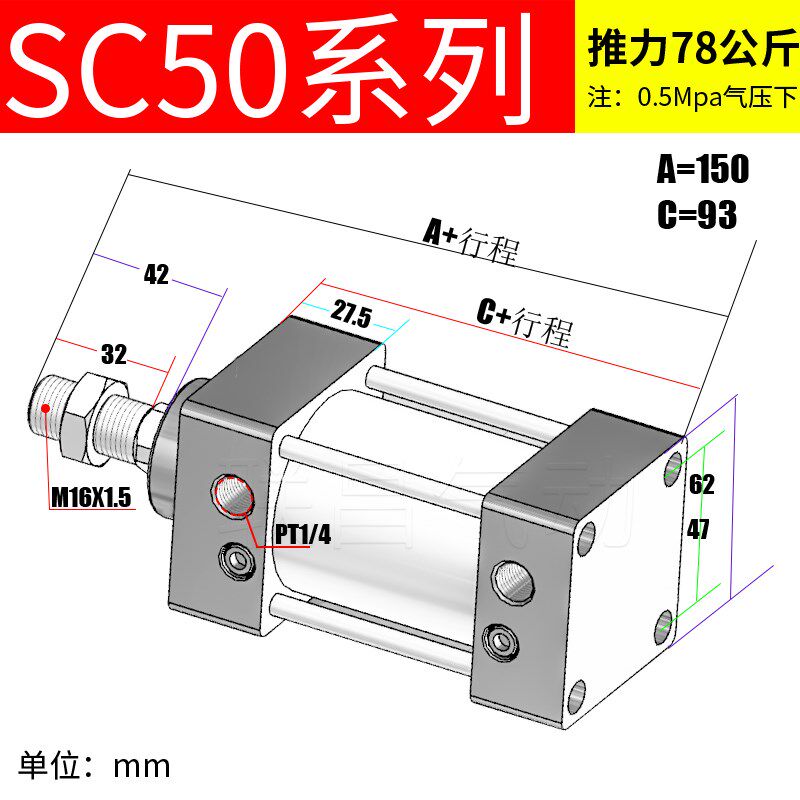Pneumatic SC Standard cylinder SC50 * 25X50X75X100X125X150 175200250 300-350