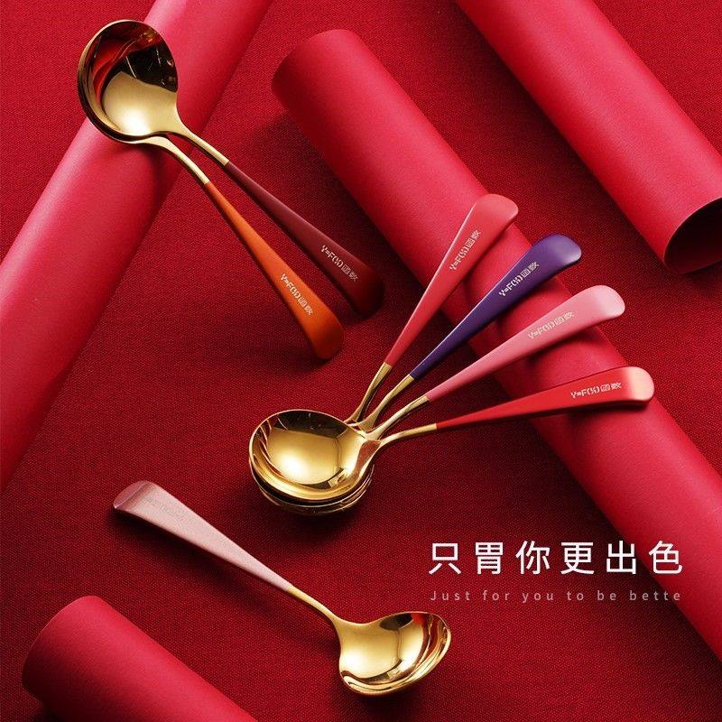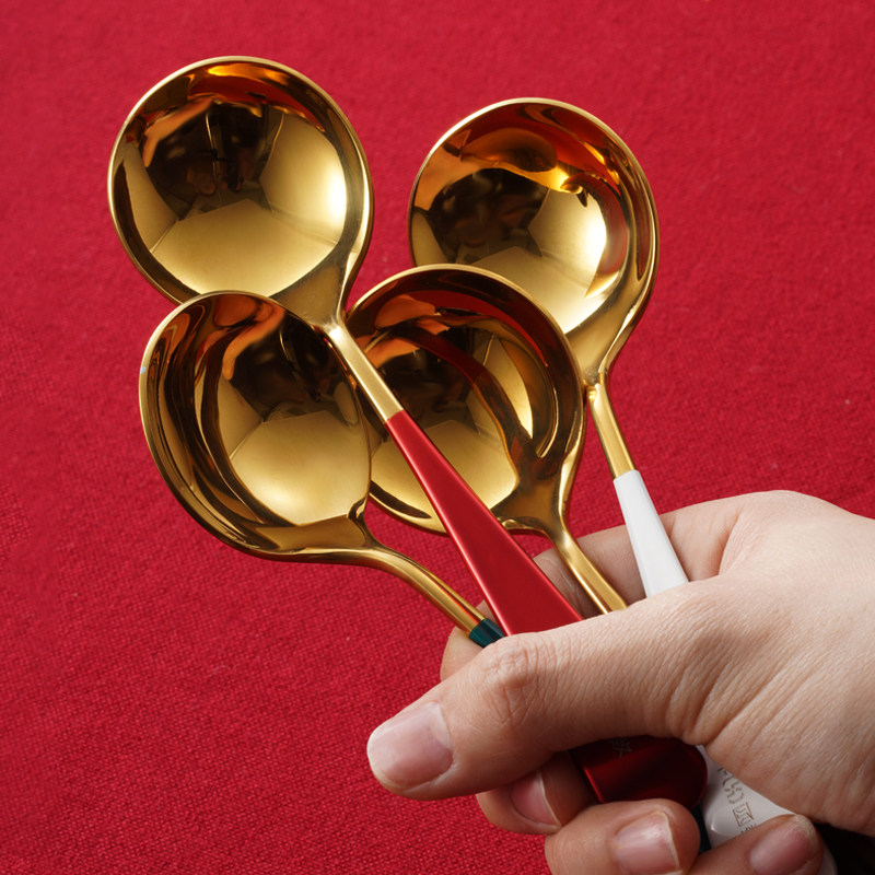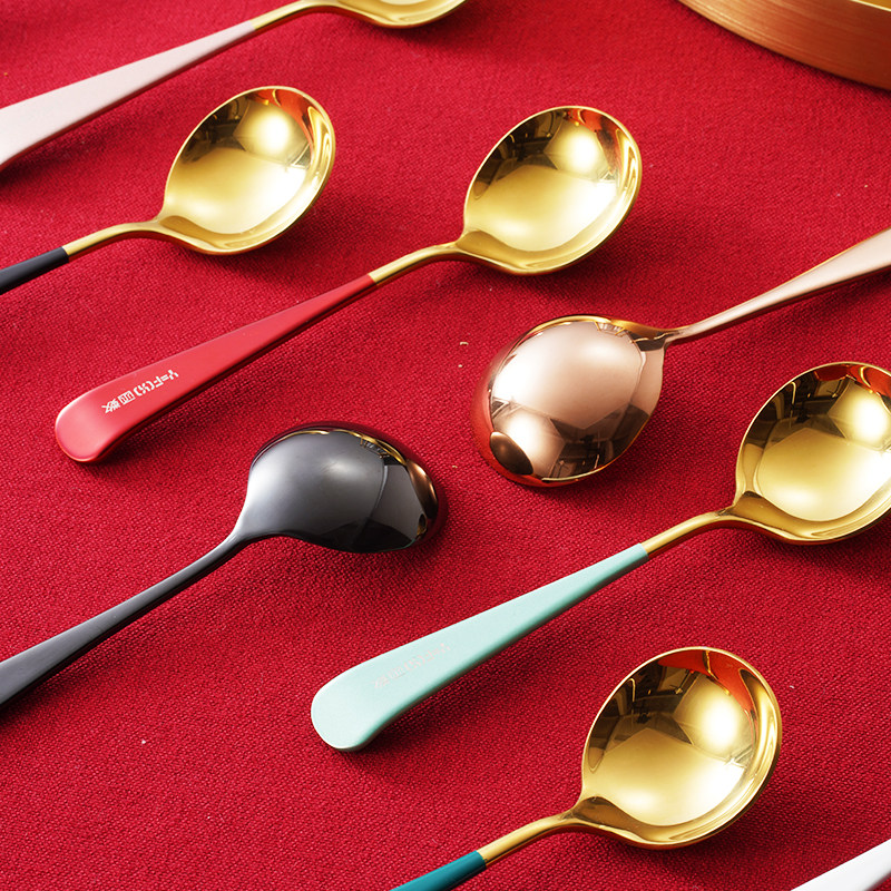 304 stainless steel home small spoon for a soup iron mesh red female child to eat soup spoon Spoon Rice Spoon Delicate Tablespoon Spoon