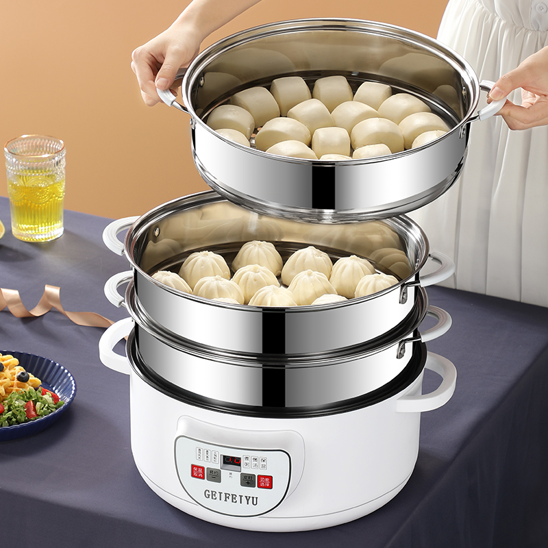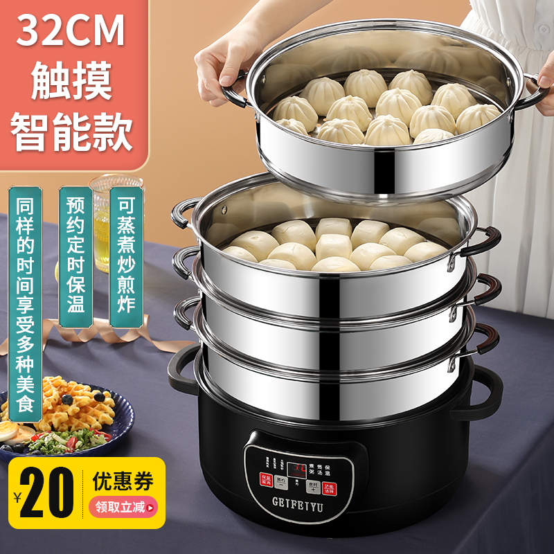 National tide white 32CM electric steamer without steamer (smart touch) National tide white 32CM electric steamer-with a steamer (smart touch) National tide white 32CM electric steamer-with two layers