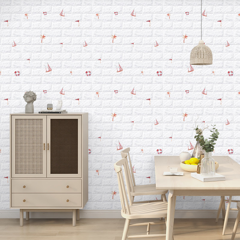 Wallpaper Self-adhesive 3d Solid wall adhesive foam brick waterproof and moisture-proof wallpaper bedroom cozy background wall mesh red decoration