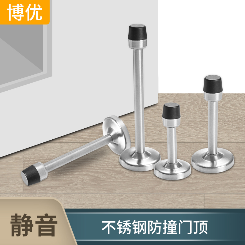 Door top free of punching stainless steel rubber limit lengthened door stopper glass door anti-knock door Resistance Door Bumper muted
