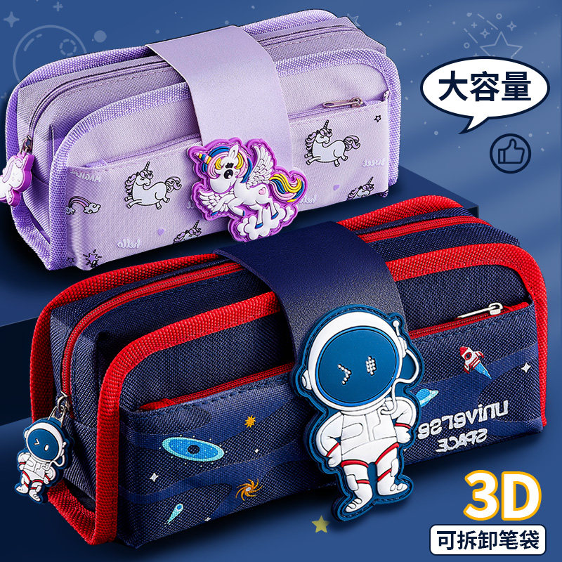 Deep Blue-Astronaut Deep Blue-Robot Pink-Unicorn Alphabet Double pen bag-Black Alphabet Double pen bag-Army Green