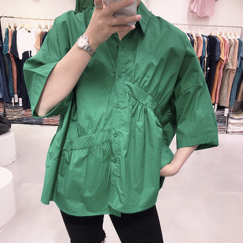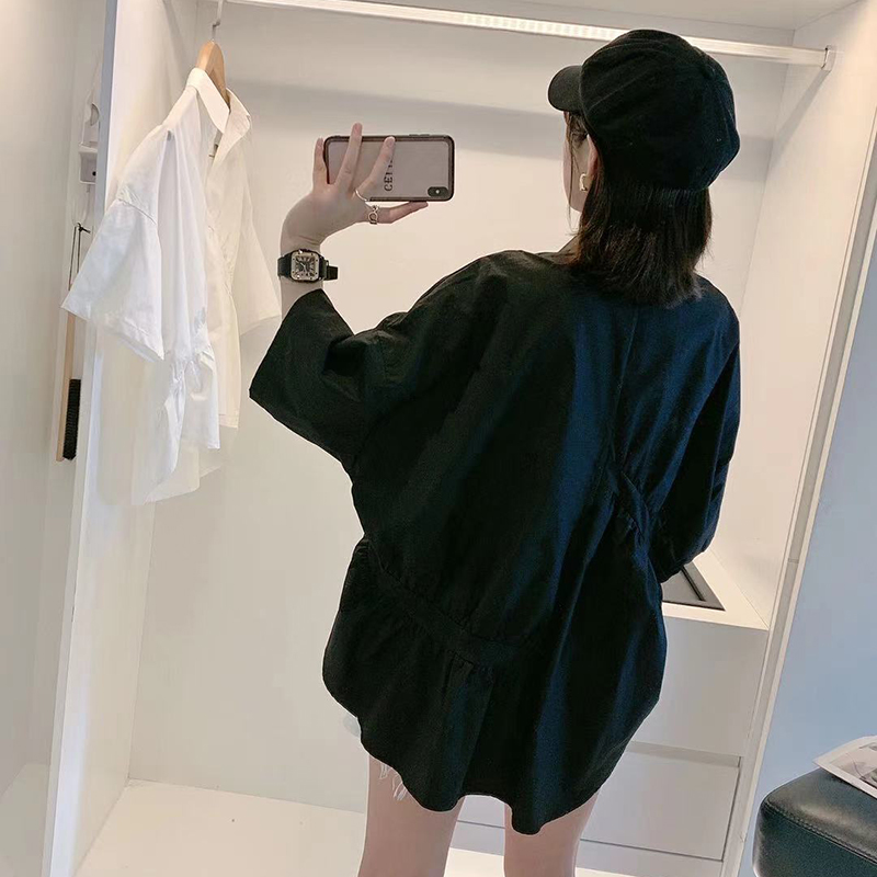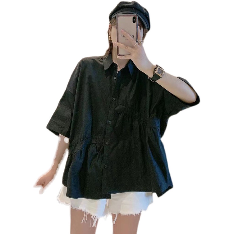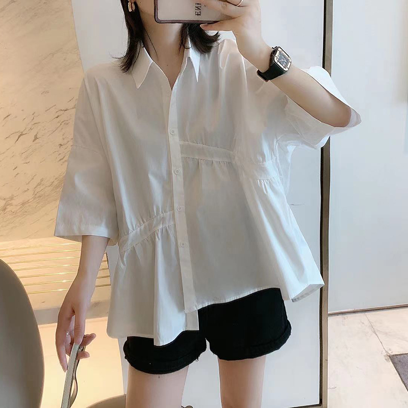 White irregular shirt women's summer thin section 2021 summer new pleated design sense half-sleeved large size top trendy