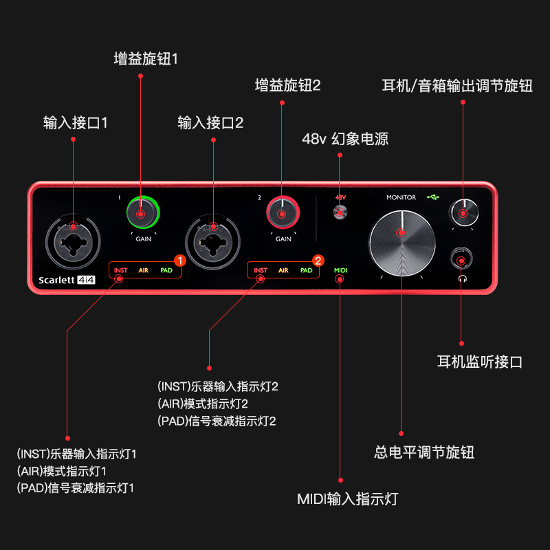 Focusrite Foxt 4i4 three generations of professional sound recordings remix live K song USB external link sound card