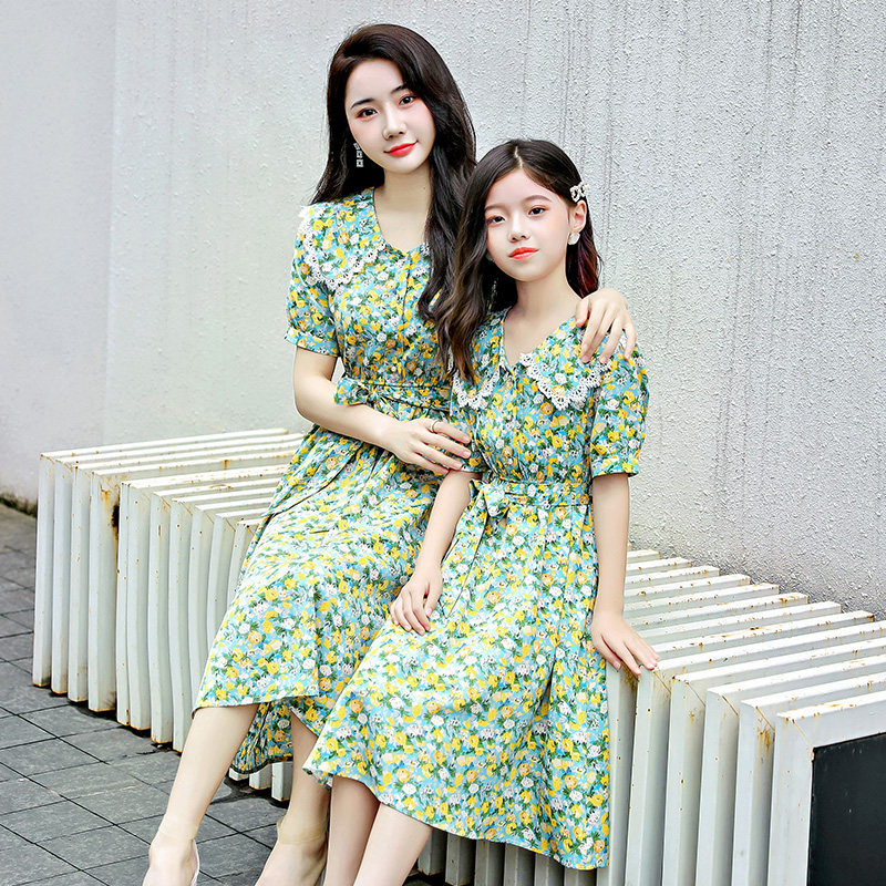 Son Ensemble of 2022 new Chaoyang sends online Red girl's high-end foreign dress Summer clothes seaside Mother women's clothing Summer
