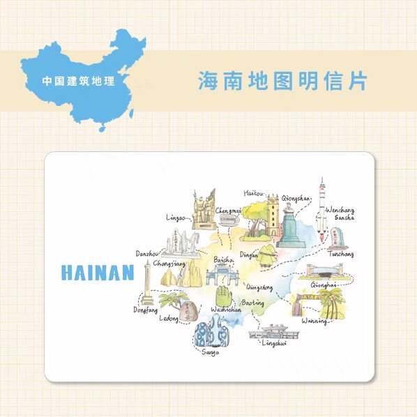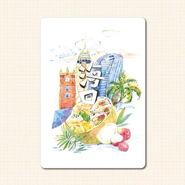 Hainan Postcard Haikou Gourmet Food Picture Conbuilding Geo-Urban Roaming Illustrations Creative Travel Commemorative Greeting Cards