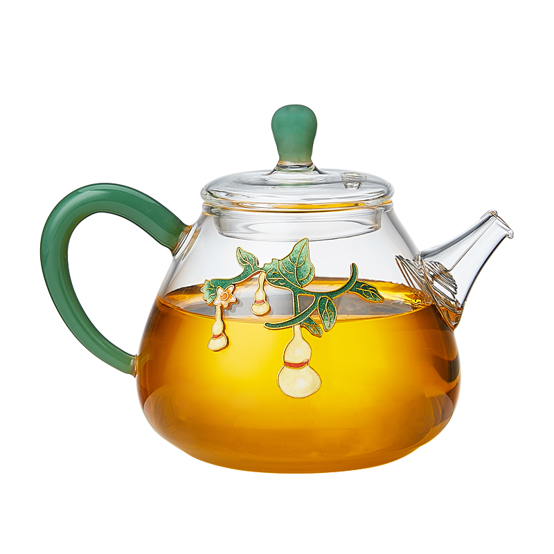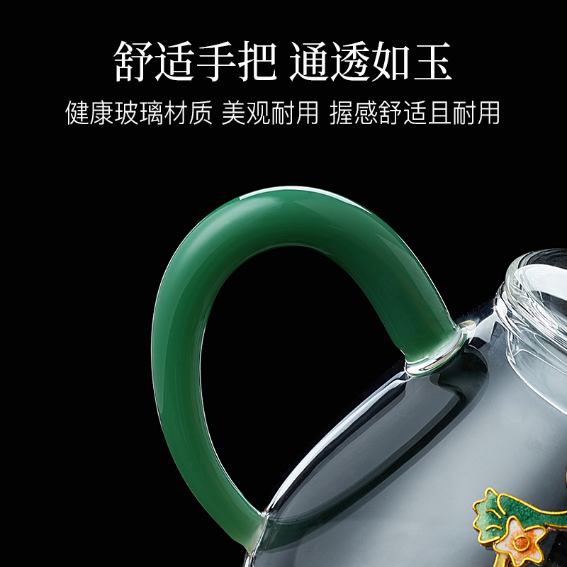 Longshan Hall Bubble Teapot Glass Thickened heat resistant View Tai Blue small capacity Flower teapot pure handmade teapot for home cooking tea