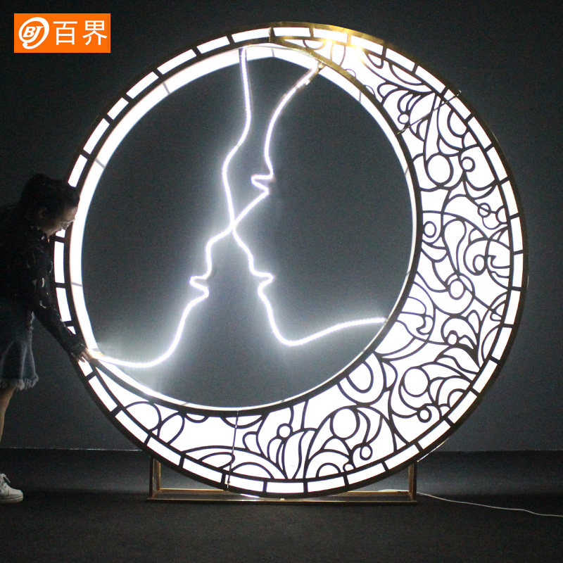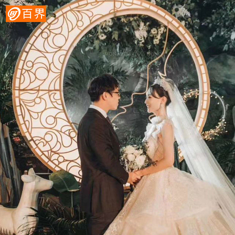 100 Worlds Wedding Celebration Props Iron Art Luminous Moon Light Box Background Pendulum Wedding Stage Arrangement Decoration Customizable