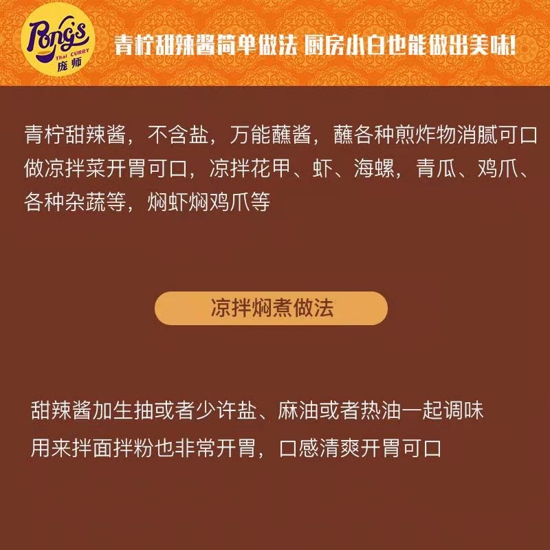 Pang Shi Brand Lime Sweet Chili Sauce 300g Thai Sweet and Sour Sauce 0 Fat Fried Chicken Dip