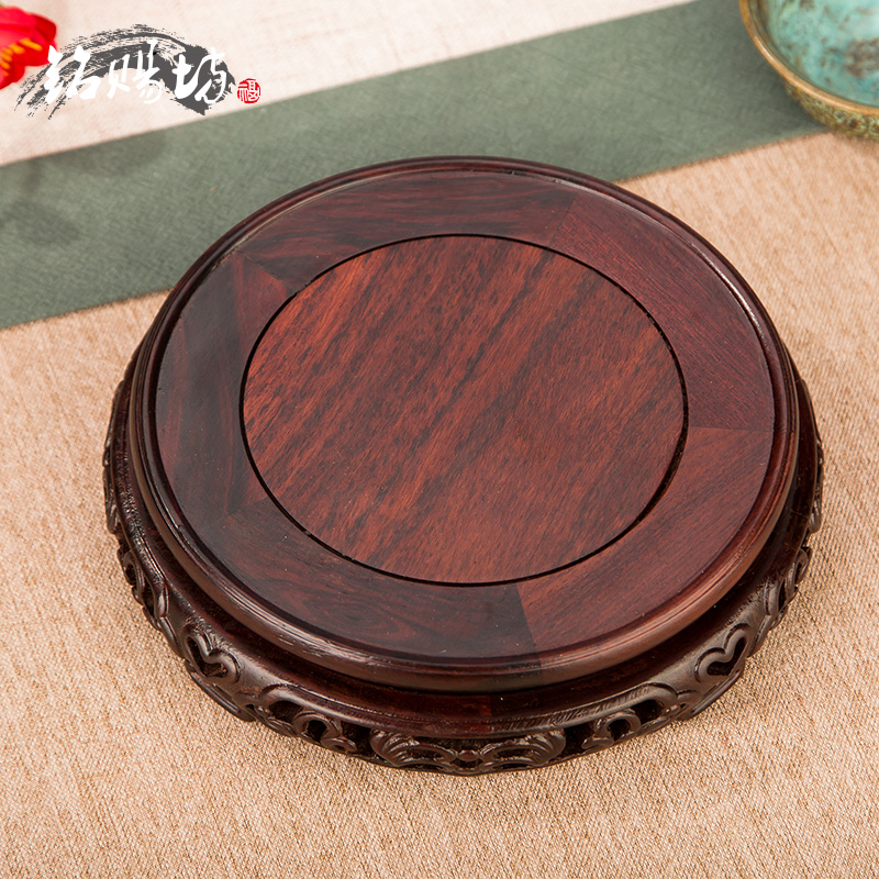 Big red sour branch purple sand pot round base solid wood vase decoration gourd small fish tank incense burner flower bonsai bracket shelf