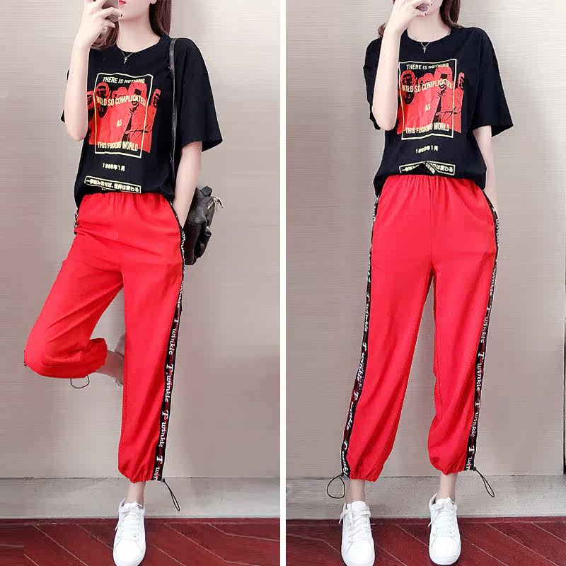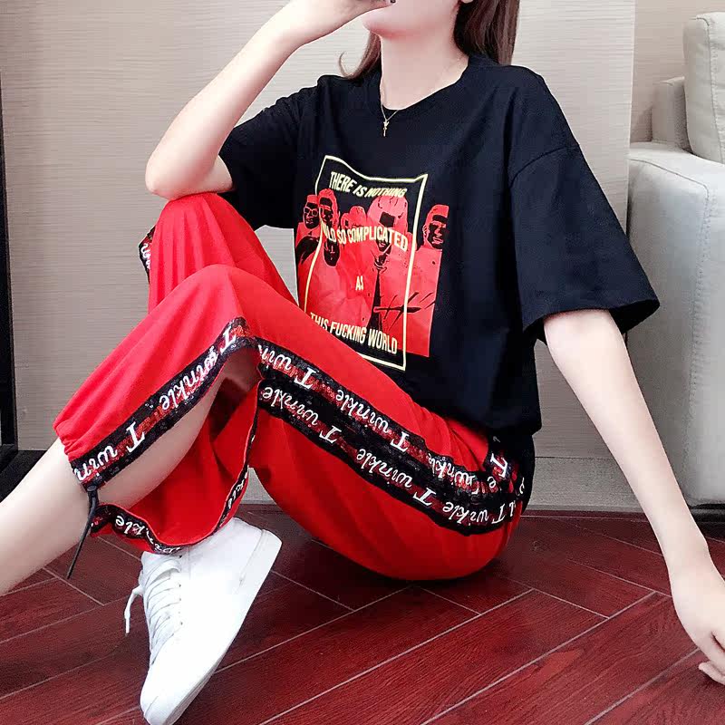 HCNTES Light Extravagant Brands Sports Suit Women Summer Slim 2021 New European Station Korean version Large size lenient