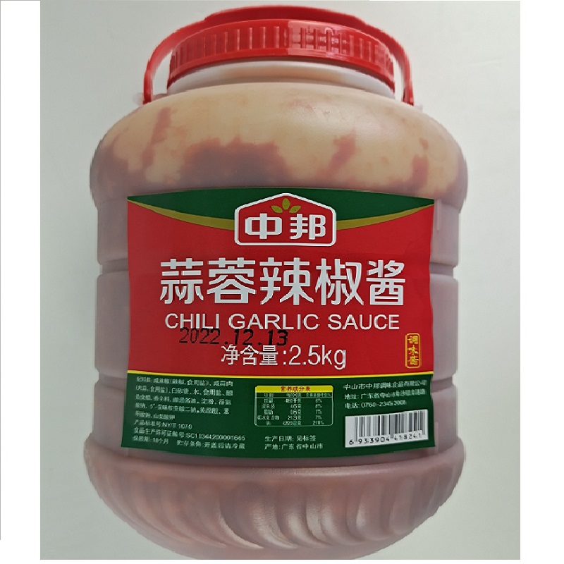 Zhongbang garlic pepper sauce 6kg*1 barrel total of 12 pounds commercial barrel powder mixed cow mixed pot dip sauce batch