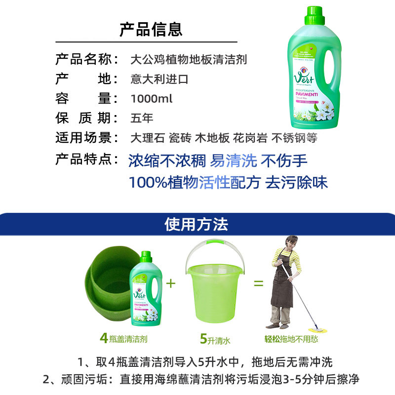 Italian big rooster head floor cleaner solid wood furniture wash-free strong decontamination compound floor cleaner