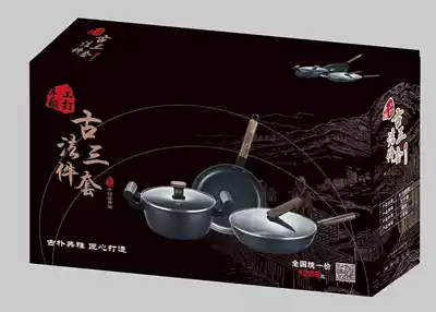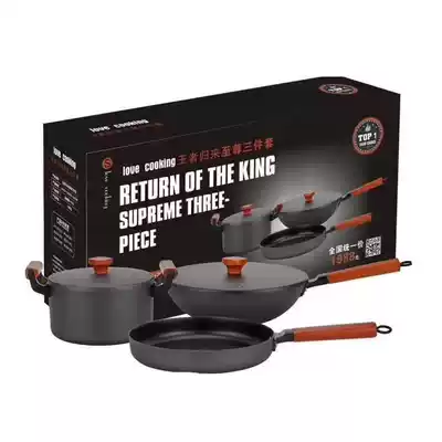 Wok pot set non-stick three-piece flat bottom with cast iron set Iron piece set iron pan frying pan soup pot home non-gift old smoke