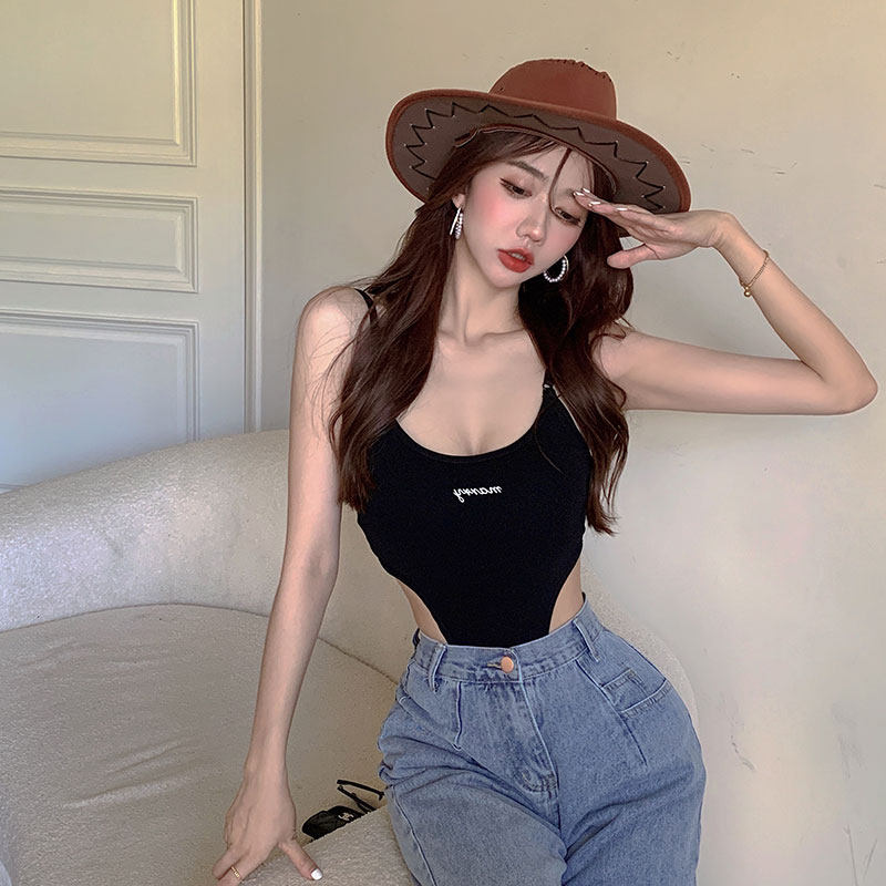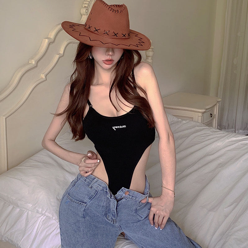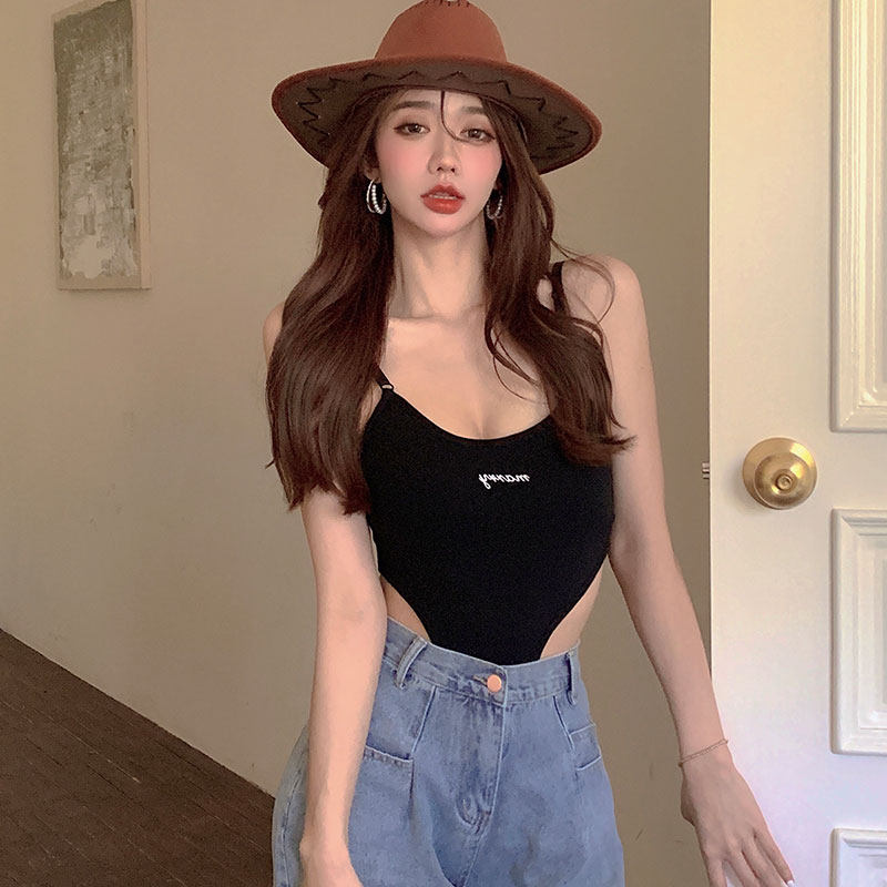Sexy French Spice Girls Sling Jumpsuit Female Summer Thin Section Small Chest Handsome Slim Elastic Seaside Vacation Jumpsuit