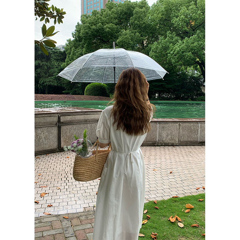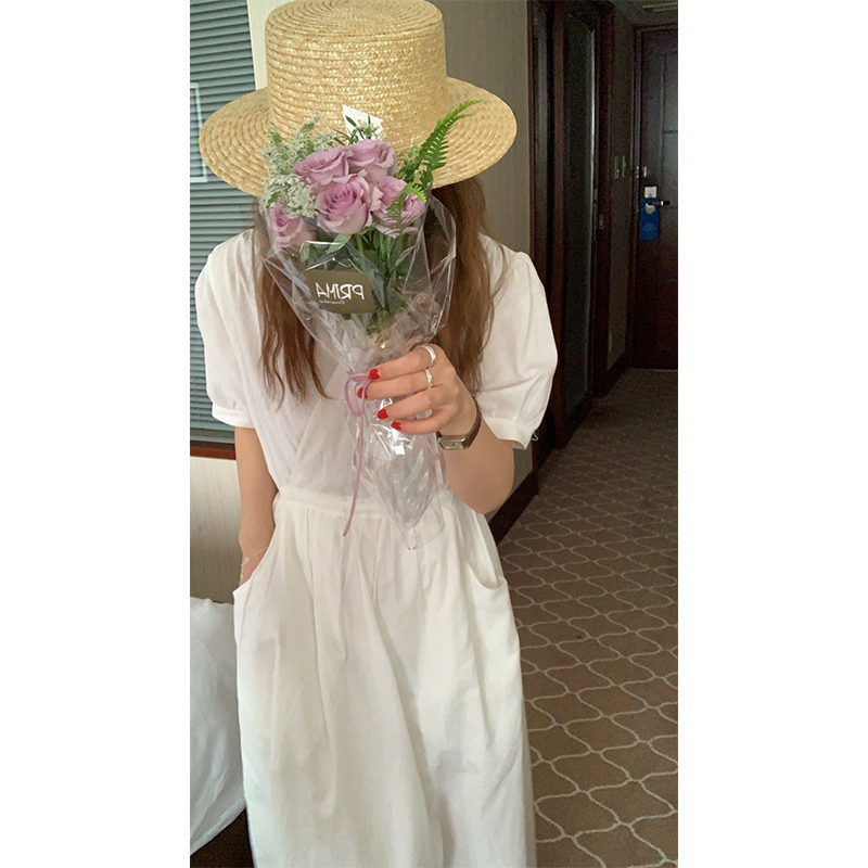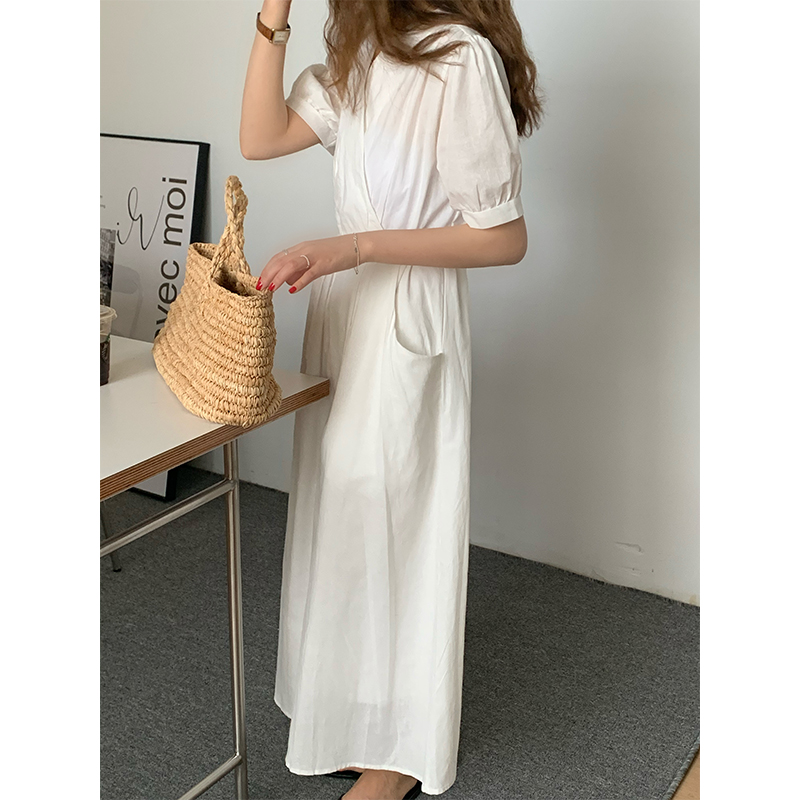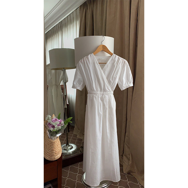 FCYstudio White V-neck dress women 2021 New Korean version of waist thin temperament first love skirt
