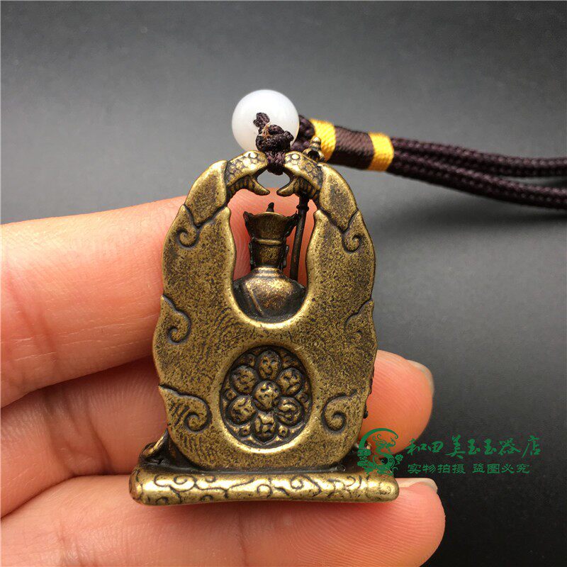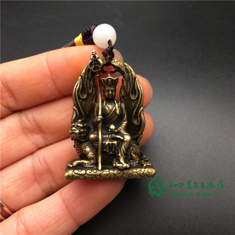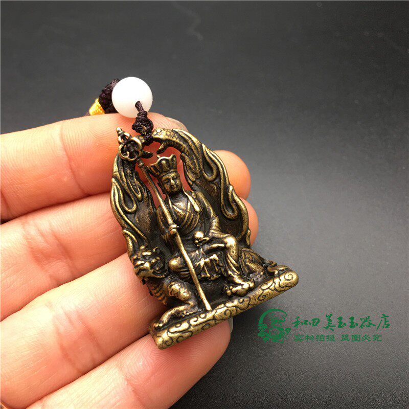 Retro bronze ground Tibetan king Bodhisattva Buddha medal pendant solid brass sit and listen to Buddha statue antique micro-sculpted bronze bronze Buddha-Taobao