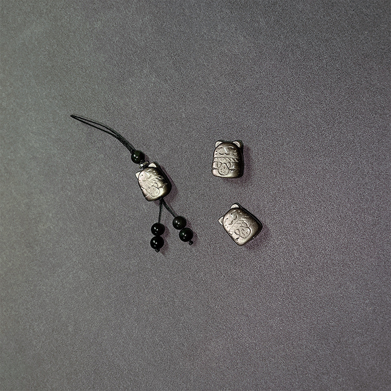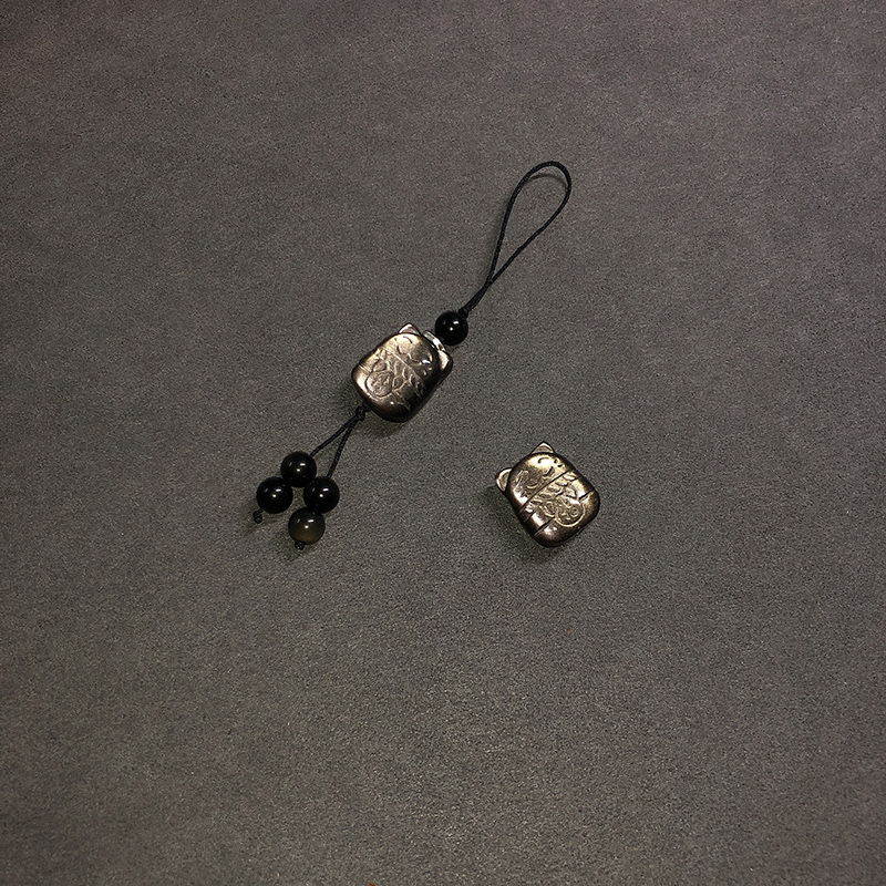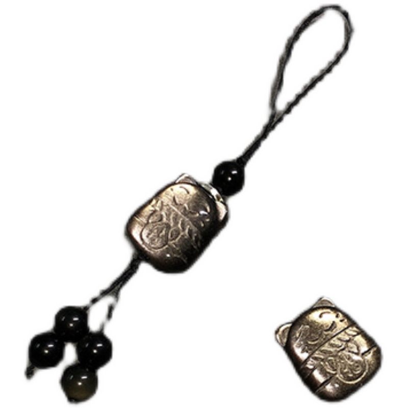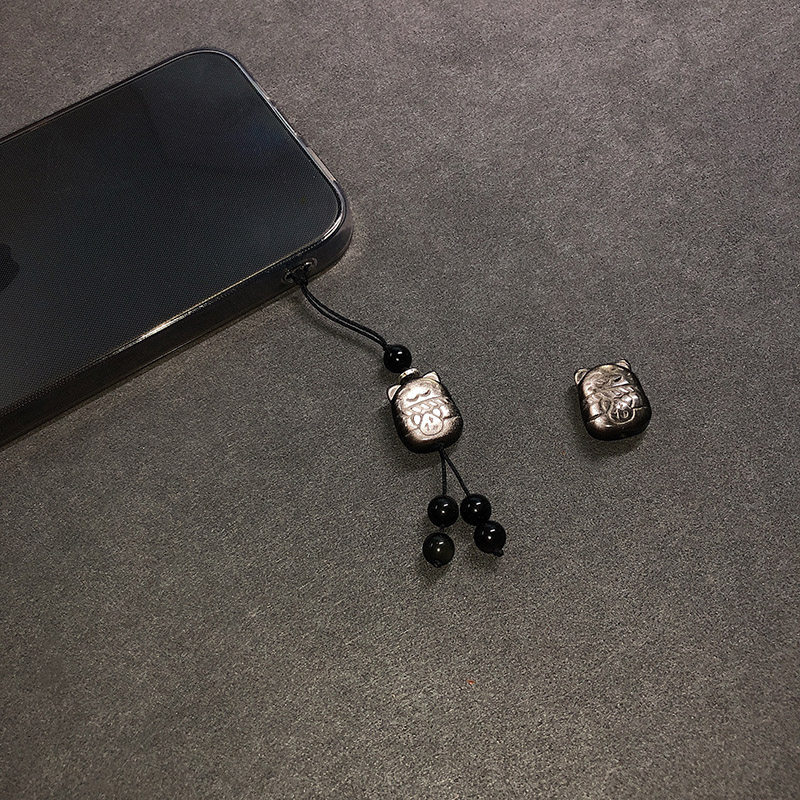 Pure Natural High Quality Silver Yao's Property Cat Mobile Phone Pendant Bag Pendant Bag Pendant Key Button Pendant Transshipment Black Yaoshi